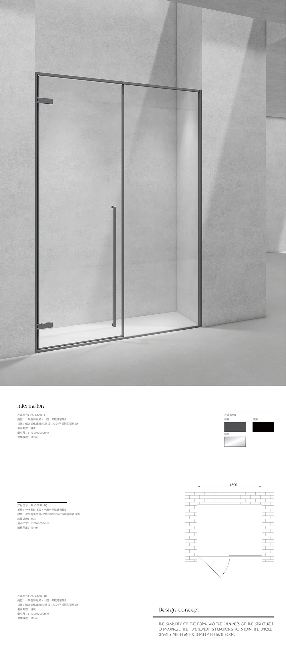 类型:一字型淋浴房(一固一开铰链锁墙)