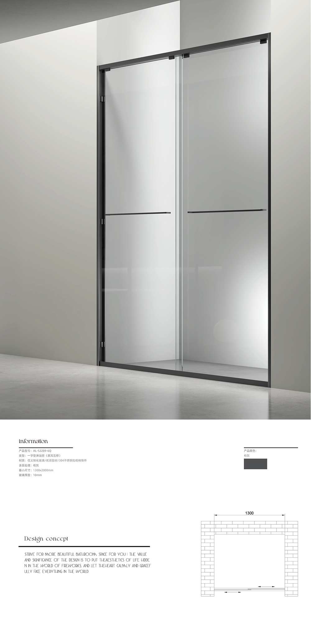 类型:一字型淋浴房(屏风互移)